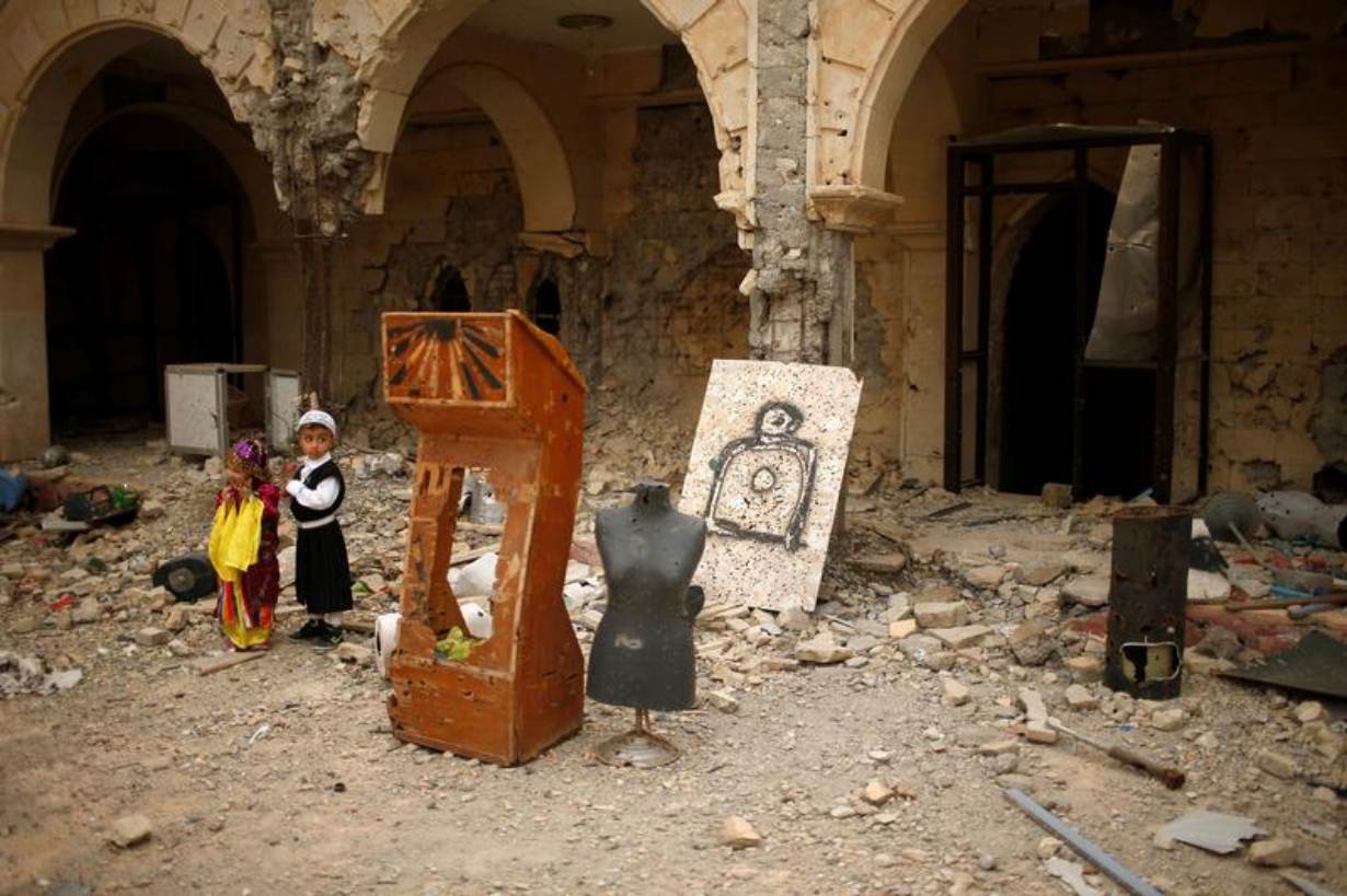 Scribbled "Islamic State" slogans could be still seen on the church's walls while torn-up prayer books littered the floor.