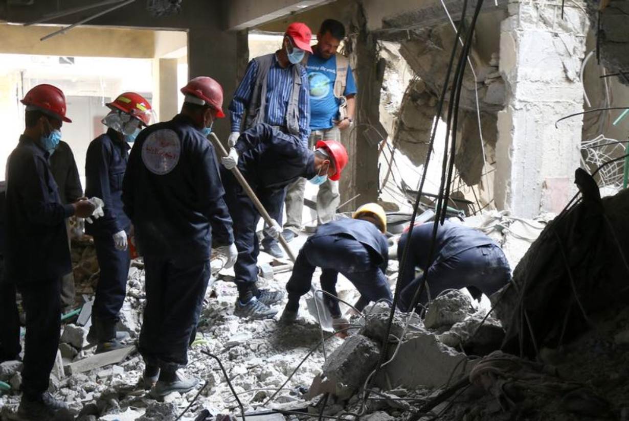 In one building, rescuers were cutting through wires and lifting heavy slabs of concrete in search of corpses or body parts trapped underneath.