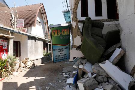 Nearly 75 percent of residential structures have been destroyed in northern Lombok because of poor construction unable to withstand strong tremors
