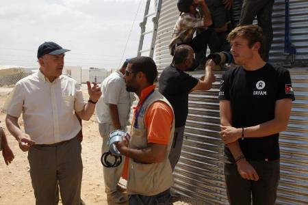FILE PHOTO: Justin Forsyth, Chief Executive of Save the Children UK, talks to internally displaced Somalis at a camp in Hodan district of Somalia's capital Mogadishu, November 21, 2012. REUTERS/Feisal Omar/File Photo