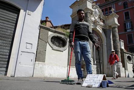 A swelling number of immigrants, rather than beg on the streets of the Italian capital, are sweeping up for loose change