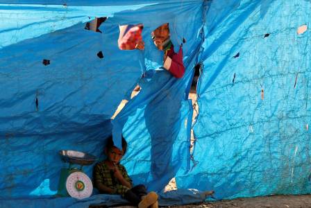 REFILE - QUALITY REPEAT Displaced children who fled the Islamic State stronghold of Mosul with their families play at Khazer camp, Iraq April 21, 2017. REUTERS/Muhammad Hamed TPX IMAGES OF THE DAY