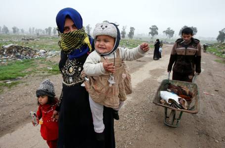 Displaced Iraqi people from Mosul flee their homes to reach safety