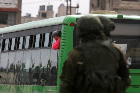 Rebels and their families leave Homs, their last bastion, under deal with the government expected to be among the largest of its kind