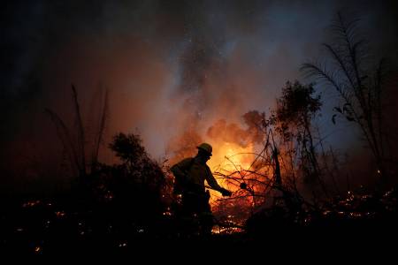Brazilian firefighters battle unpredictable blazes across the world's largest rainforest