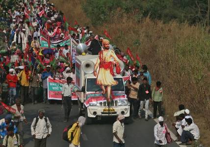 The protesters chanted slogans demanding land transfers and compensation for drought-hit areas as they marched through Mumbai
