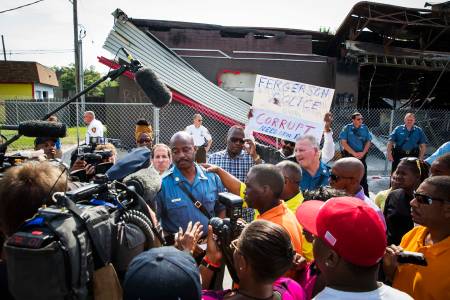 Johnson of the Missouri Highway Patrol addresses the media in Ferguson
