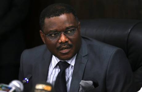 Nigeria's Minister of Interior Affairs Moro attends a media briefing on updates about the Ebola outbreak in Nigeria