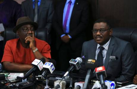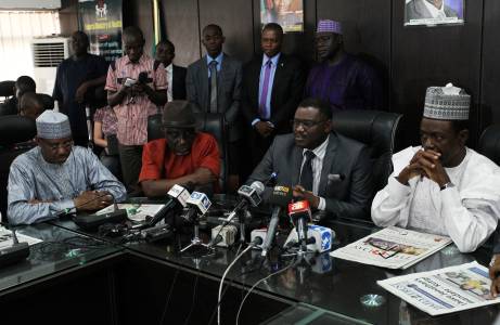 Nigeria's ministers attend a media briefing on updates about the Ebola outbreak in Nigeria