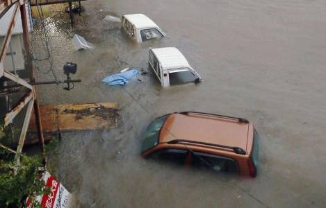 Authorities issue highest typhoon alert and landslide warnings as storm dumps a metre of rain in an hour