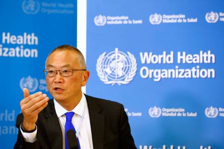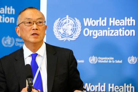 Fukuda, WHO's assistant director general for health security, addresses the media in Geneva
