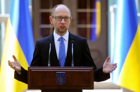 Ukraine's PM Yatseniuk speaks to the media in Kiev