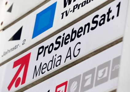 File photo of logo of ProSiebenSat.1 Media AG on a street sign in Unterfoehring