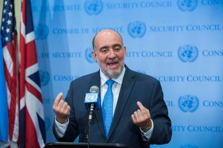 Israel's U.N. Ambassador Ron Prosor speaks to the media after a midnight meeting of the U.N. Security Council at the U.N. headquarters in New York