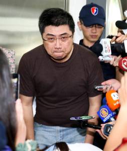General Manager of TransAsia Airways Hsu Yi-Tsung bows as he speaks to the media after a TransAsia Airways plane crashed on the island of Penghu on Wednesday, in Taipei, July 23, 2014. The leaders of rivals China and Taiwan expressed condolences on Thursday for victims of a TransAsia Airways turboprop plane that crashed during a thunderstorm the previous day killing 48 people including two French nationals. REUTERS/Stringer (TAIWAN - Tags: DISASTER ENVIRONMENT BUSINESS TRANSPORT) CHINA OUT. NO COMMERCIAL OR EDITORIAL SALES IN CHINA. TAIWAN OUT. NO COMMERCIAL OR EDITORIAL SALES IN TAIWAN