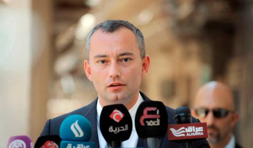 Nickolay Mladenov, UN Secretary-General Special Representative for Iraq, speaks to the media after a meeting with Grand Ayatollah Ali al-Sistani in Najaf