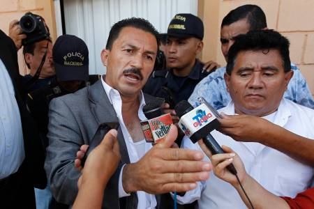 Luis Galdamez, congressman for the Liberty and Refoundation Party (LIBRE), speaks to local media while being detained at a police station in Tegucigalpa July 16, 2014. Galdamez gunned down a taxi driver during a traffic argument near the National Congress building, local media reported. REUTERS/Jorge Cabrera (HONDURAS - Tags: CIVIL UNREST CRIME LAW POLITICS)