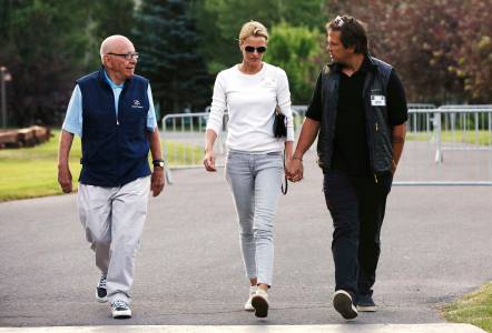 Rupert Murdoch, Twenty-First Century Fox Inc CEO, arrives with his son Lachlan and his daughter-in-law Sarah for the third day of the Allen and Co. media conference in Sun Valley