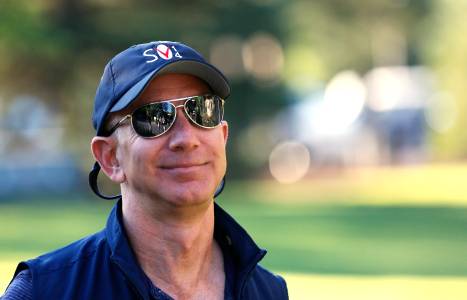 Jeff Bezos, founder and CEO of Amazon.com, arrives for the third day of the Allen and Co. media conference in Sun Valley
