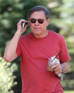 Entertainment executive Michael Ovitz talks on his phone on the second day of the Allen and Co. media conference in Sun Valley, Idaho July 10, 2014. Media and technology CEOs and investors get together every year at the Allen & Co conference in Sun Valley for a week of mingling and deal-making at the upscale Idaho mountain resort. REUTERS/Rick Wilking (UNITED STATES - Tags: BUSINESS MEDIA SCIENCE TECHNOLOGY)