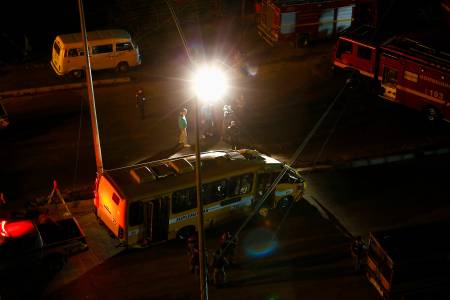 Members of media records bus which was trapped underneath bridge that collapsed while under construction in Belo Horizonte