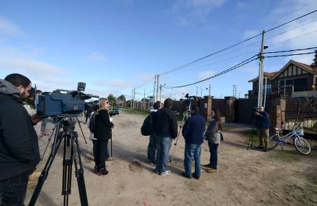 Members of the media await outside Uruguayan soccer player Luis Suarez' home after Suarez arrived earlier today in the small coastal town of Solymar, near Montevideo June 27, 2014. Suarez flew home to Uruguay on Friday after being thrown out of the World Cup and banned from soccer for four months for biting Italian defender Giorgio Chiellini, who criticized the punishment as "excessive". After his arrival on Friday, Suarez, his wife and other family members were driven to a home he has in Solymar and the player appeared keen on maintaining a low profile. REUTERS/Carlos Pazos (URUGUAY - Tags: SPORT SOCCER WORLD CUP MEDIA)