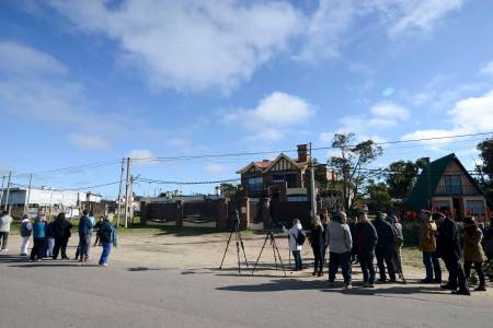 Members of the media wait outside Uruguayan soccer player Luis Suarez' home after Suarez arrived earlier today in the small coastal town of Solymar, near Montevideo June 27, 2014. Suarez flew home to Uruguay on Friday after being thrown out of the World Cup and banned from soccer for four months for biting Italian defender Giorgio Chiellini, who criticized the punishment as "excessive". After his arrival on Friday, Suarez, his wife and other family members were driven to a home he has in Solymar and the player appeared keen on maintaining a low profile. REUTERS/Carlos Pazos (URUGUAY - Tags: SPORT SOCCER WORLD CUP MEDIA)