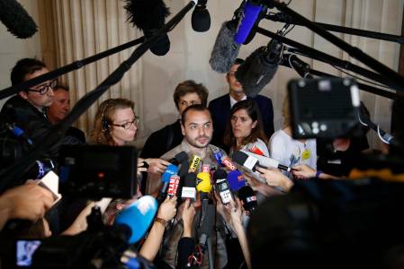 Francois Lambert, the nephew of Vincent Lambert, who is tetraplegic and currently on artificial life support, speaks to the media after the verdict in a judicial case at the Council of State in Paris