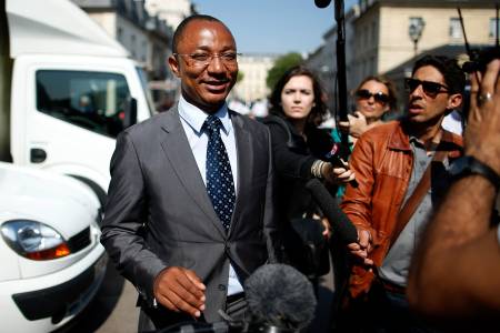 Apolin Pepiezep (C), lawyer of Mehdi Nemmouche, 29, the French national who is suspected of the shooting attack in the Brussels Jewish Museum last month that left four people dead, speaks to the journalists after a hearing for his client's extradition outside the Appeal Court of Versailles, near Paris, June 12, 2014. REUTERS/Benoit Tessier (FRANCE - Tags: CRIME LAW MEDIA)