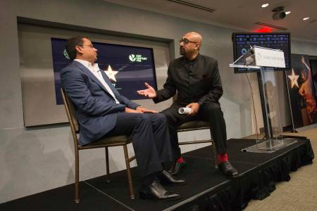 Aparisim 'Bobby' Ghosh, TIME Magazine's International editor, speaks to Shankar, chief executive officer of Star India, during a dialogue at the Paley Center for Media in Manhattan