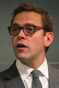 James Murdoch, co-chief operating officer of 21st Century Fox, introduces Uday Shankar (not pictured), chief executive officer of Star India, ahead of a dialogue at the Paley Center for Media in Manhattan, New York May 30, 2014. REUTERS/Adrees Latif (UNITED STATES - Tags: ENTERTAINMENT HEADSHOT BUSINESS MEDIA)