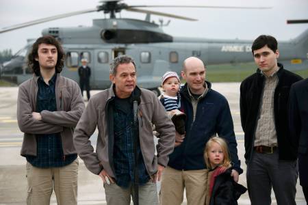 Former French hostage and journalist Nicolas Henin is greeted by his family moments after a transfer by helicopter from Evreux to the military airbase in Villacoulbay