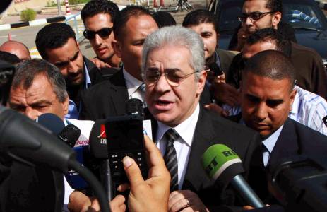 Leftist politician Hamdeen Sabahi (C) speaks to the media as he arrives to submit his bid to run as presidential candidate to the presidential election committee in Cairo, April 19, 2014. Sabahi officially submitted his bid on Saturday to run for Egypt's presidency, making him the second candidate for next month's election alongside former army-chief Abdel Fattah al-Sisi who is widely expected to win. The election is due to start on May 26-27. REUTERS/Al Youm Al Saabi Newspaper (EGYPT - Tags: POLITICS ELECTIONS MEDIA) EGYPT OUT. NO COMMERCIAL OR EDITORIAL SALES IN EGYPT