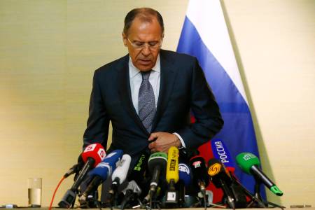 Russian Foreign Minister Lavrov arrives for media briefing after talks on the situation in Ukraine in Geneva