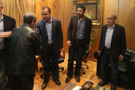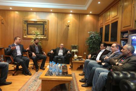 Hezbollah MP Hassan Fadlallah (2nd L) accepts condolences inside Hezbollah al-Manar Television building in Beirut for the death of three Lebanese journalists working for the channel April 14, 2014. Three Lebanese journalists working for Hezbollah's al-Manar television were killed on Monday after coming under attack in the historic Christian town of Maaloula, north of Damascus. Al-Manar said two other members of the team were wounded but were in a stable condition. REUTERS/Hasan Shaaban (LEBANON - Tags: POLITICS CIVIL UNREST CONFLICT MEDIA)