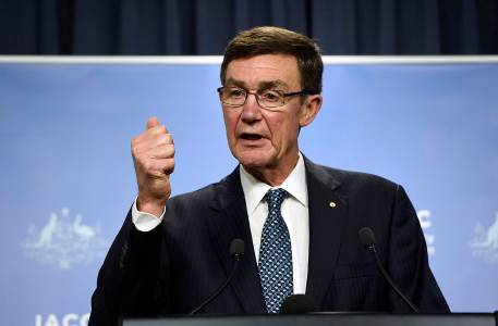 Former Australian Air Chief Marshal Angus Houston addresses the media regarding the missing Malaysia Airlines Flight MH370 at Dumas House in Perth April 14, 2014. A U.S. Navy underwater drone will be deployed to scour the floor of the Indian Ocean for the missing Malaysia Airlines plane, search officials said on Monday, launching a new phase of the operation after nearly six weeks of fruitless searching. REUTERS/Richard Polden (AUSTRALIA - Tags: TRANSPORT MILITARY DISASTER)