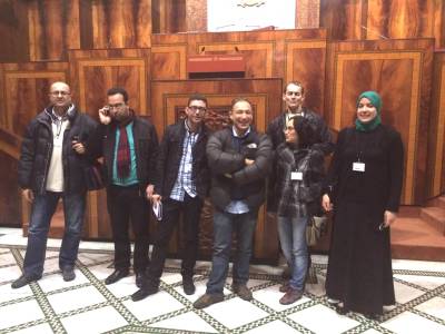 Alexey Kariyakin (back, L) and Sergey Korsunskiy (back, R), leaders of pro-Russian protesters, speak with journalists in a conference room inside of seized SBU state security service in Luhansk, in eastern Ukraine April 10, 2014. Pro-Russian separatists reinforced barricades around the state security building in the eastern Ukrainian city of Luhansk on Wednesday and called on President Vladimir Putin for help after the government warned it could use force to restore order. REUTERS/Shamil Zhumatov (UKRAINE - Tags: POLITICS CIVIL UNREST MEDIA)