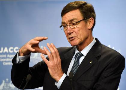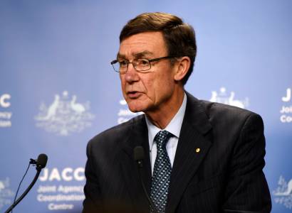 Angus Houston, head of the Australian agency coordinating the search for the missing Malaysia Airlines flight MH370, addresses the media in Perth