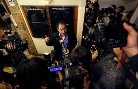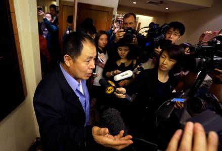 A family member of a passenger onboard Malaysia Airlines Flight MH370 speaks to the media after a routine briefing given by the Malaysian government and the military's representatives at Lido Hotel in Beijing, March 23, 2014. Australia's prime minister said on Sunday there was "increasing hope" of a breakthrough in the hunt for a missing Malaysian airliner carrying 239 people, after Chinese satellite images showed what could be debris within a search area deep in the southern Indian Ocean. REUTERS/Jason Lee (CHINA - Tags: DISASTER SOCIETY POLITICS TRANSPORT)
