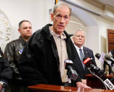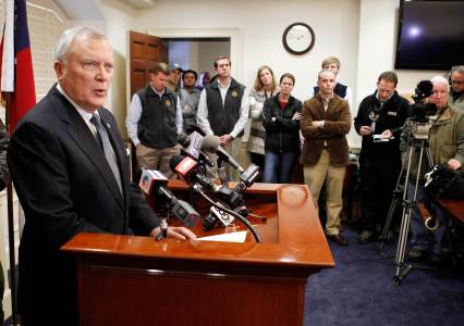 Georgia Governor Deal speaks to the media as Georgia Emergency Manager English land Public Safety Director McDonough listen at the State Capitol in Atlanta