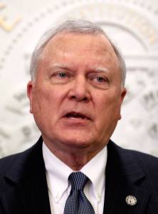 Georgia Governor Nathan Deal speaks to the media at the State Capitol in Atlanta, Georgia, January 30, 2014. Deal stated he took full responsibility for thousands of motorists and school children being stranded after an ice storm paralyzed much of the region, blocking highways and leading to at least seven deaths. REUTERS/Tami Chappell (UNITED STATES - Tags: ENVIRONMENT POLITICS HEADSHOT DISASTER)