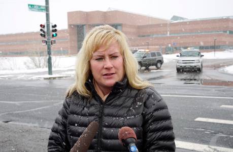 Cheri Spottke, an investigator with the Westminster Police Department, speaks to the media outside Standley Lake High School in Westminster January 27, 2014. A 16-year-old student set himself on fire in the cafeteria of the suburban Denver high school on Monday in what police said was an apparent suicide attempt and they evacuated the campus. The student at Standley Lake High School in the suburb of Westminster suffered burns over 80 percent of his body, according to a spokeswoman for the town's fire department. A police spokeswoman said the boy was hospitalized in critical condition. REUTERS/Rick Wilking (UNITED STATES - Tags: DISASTER EDUCATION)