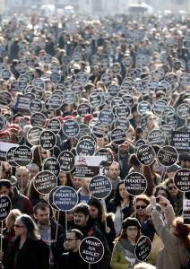 Protesters march to Agos newspaper office during a demonstration to mark the seventh anniversary of the killing of Turkish-Armenian journalist Hrant Dink in Istanbul January 19, 2014. REUTERS/Osman Orsal (TURKEY - Tags: POLITICS CIVIL UNREST MEDIA ANNIVERSARY)