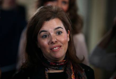 Spain's Deputy Prime Minister de Santamaria listens to journalists after a news conference of Spain's Prime Minister Rajoy after his last cabinet meeting at Moncloa palace in Madrid