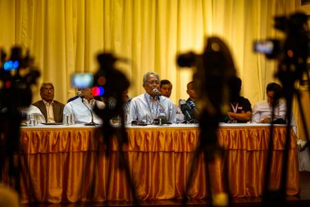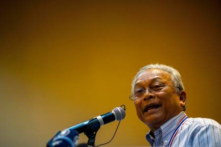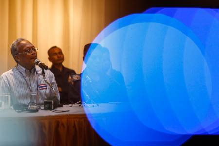 Thaugsuban answers questions from the media during a news conference in Bangkok