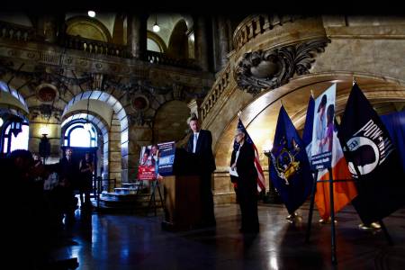 New York Mayor-elect De Blasio speaks to the media during a news conference in New York