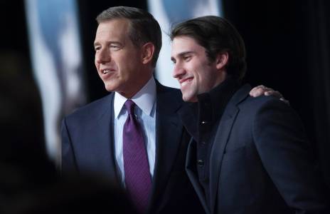 Television journalist Brian Williams (L) and his son Doug arrive for the premiere of the movie "Lone Survivor" in New York December 3, 2013. REUTERS/Carlo Allegri (UNITED STATES - Tags: ENTERTAINMENT MEDIA)