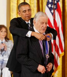 U.S. President Barack Obama presents the Presidential Medal of Freedom to journalist Ben Bradlee at a ceremony in the East Room of the White House in Washington November 20, 2013. REUTERS/Larry Downing (UNITED STATES - Tags: POLITICS MEDIA)