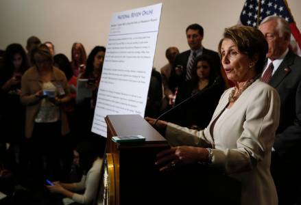 U.S. House Minority Leader Nancy Pelosi (D-CA) talks to the media on Obamacare following a Caucus meeting on Capitol Hill in Washington