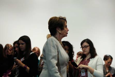 U.S. House Minority Leader Nancy Pelosi (D-CA) arrives to talk to the media on Obamacare, following a Caucus meeting on Capitol Hill in Washington